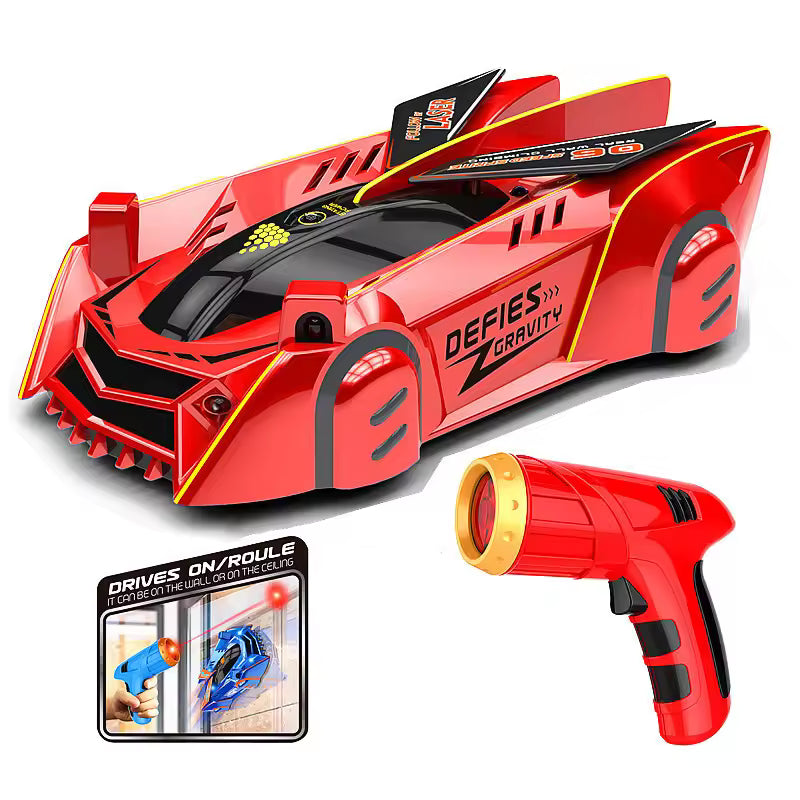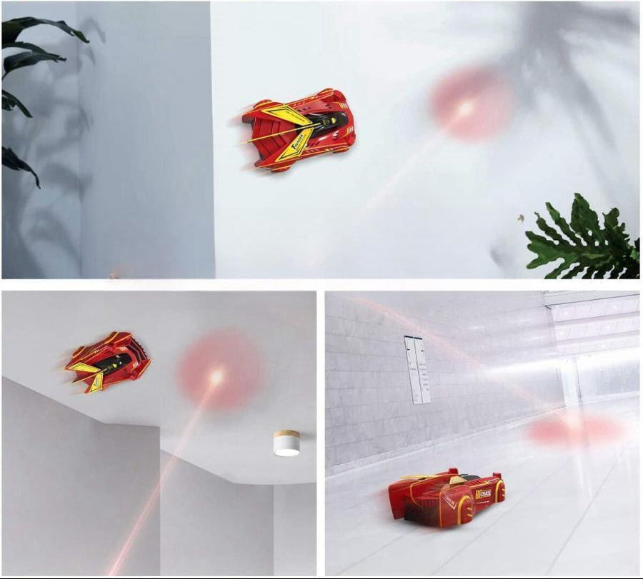 Ovo vozilo za vožnju po zidu je zabavno i lako za kontrolisanje. Sa višesmernom kontrolom, samo usmerite lasersko svetlo gde god poželite da automobil ide — možete praviti oštre zaokrete, čak i promeniti pravac gibanja.