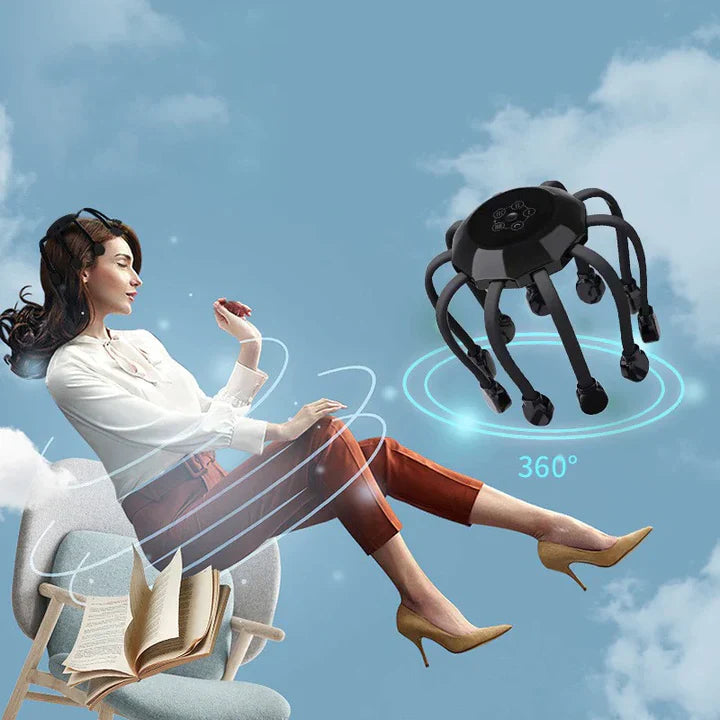 Iskusite vrhunski užitak spa tretmana za vašu glavu, gde god i kada god želite, opuštajući teme glave i oslobađajući se stresa. Octopod masažer za glavu bez napora klizi po vašem temenu, pružajući osećaj euforije koji umanjuje vaš stres i anksioznost svaki put kada ga koristite.